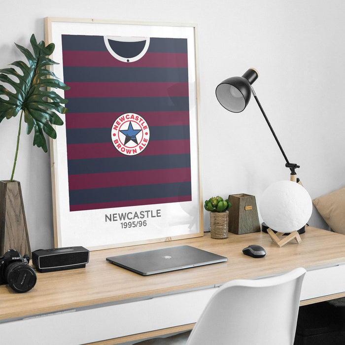 Add some football charm to your room with our Newcastle United 1995 away kit poster. Printed on premium paper, order with or without a frame and easily incorporate it into any room in your home or office. Perfect for football enthusiasts!